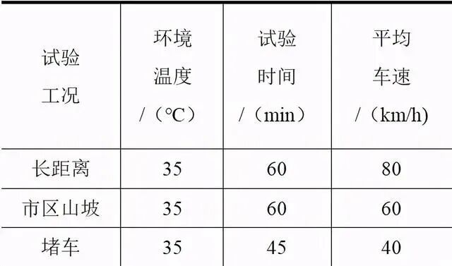 试验时,环境温度范围为35℃,湿度范围为30%~90%,试验时间范围为45~90min。试验人员按表1的工况驾驶车辆进行试验。