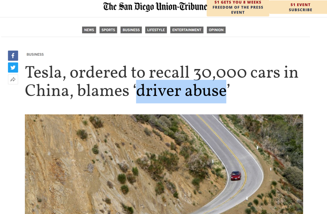 根据外媒消息,特斯拉认为在中国的召回,原本是司机问题导致的。在一封特斯拉律师致函给NHTSA(美国国家公路交通安全管理局)的信中,该公司将这一问题归咎于中国司机,称不存在安全问题,并表示不打算在中国以外地区进行召回。